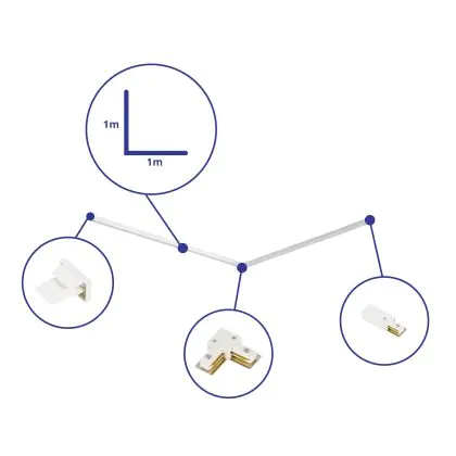 | Fabrikantnaam | Complete L shaped 1-Phase Track Set – 1 x 1 meter incl. End Cap, Power Connector and L -Connector W | |