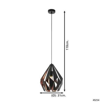 Eglo Pendelarmatuur Carlton 1 Zwart, Koper | Geschikt voor E27