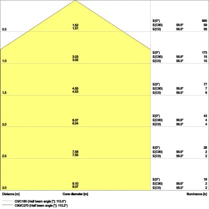 ![]() De kleurcode is een combinatie van de kleurweergave (CRI) en lichtkleur (Kelvin). Het eerste getal is de kleurweergave (1 = zeer slechte kleurweergave, 9 = maximale kleurechtheid). Het tweede en derde cijfer betreft de lichtkleur. Een lamp met kleurcode 830 heeft bijvoorbeeld een goede kleurweergave en straalt een warm wit licht uit (3000K), waar een lamp met de kleurcode 940 een uitstekende CRI heeft en een koel wit licht (4000K) uitstraalt. |