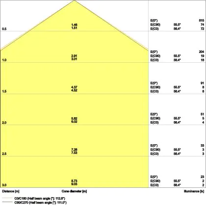 ![]() De kleurcode is een combinatie van de kleurweergave (CRI) en lichtkleur (Kelvin). Het eerste getal is de kleurweergave (1 = zeer slechte kleurweergave, 9 = maximale kleurechtheid). Het tweede en derde cijfer betreft de lichtkleur. Een lamp met kleurcode 830 heeft bijvoorbeeld een goede kleurweergave en straalt een warm wit licht uit (3000K), waar een lamp met de kleurcode 940 een uitstekende CRI heeft en een koel wit licht (4000K) uitstraalt. |