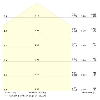De lichtopbrengst (Lumen), geeft weer hoe krachtig het uitgestraalde licht is. Dit is belangrijk om te weten om de juiste sfeer te creëren. 0 tot 400 Lumen is bij uitstek geschikt voor accent- of sfeerverlichting. Een hoger aantal Lumen is, afhankelijk van de grootte van de ruimte, beter geschikt als ondersteunende- of basisverlichting. Heb je plafonds hoger dan 4 meter, dan is een lichtopbrengst van minimaal 8000lm aan te raden indien heldere verliching gewenst is (vb. in werkomgevingen).