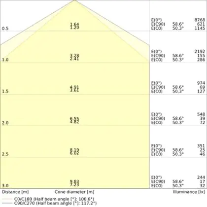 De lichtopbrengst (Lumen), geeft weer hoe krachtig het uitgestraalde licht is. Dit is belangrijk om te weten om de juiste sfeer te creëren. 0 tot 400 Lumen is bij uitstek geschikt voor accent- of sfeerverlichting. Een hoger aantal Lumen is, afhankelijk van de grootte van de ruimte, beter geschikt als ondersteunende- of basisverlichting. Heb je plafonds hoger dan 4 meter, dan is een lichtopbrengst van minimaal 8000lm aan te raden indien heldere verliching gewenst is (vb. in werkomgevingen).