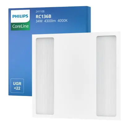 Philips LED Paneel Coreline RC136B 25/34W 3100-4300lm - 840 Koel Wit | 60x60cm - UGR <22 - Selecteerbaar Wattage - 3 Uur Noodverlichting
